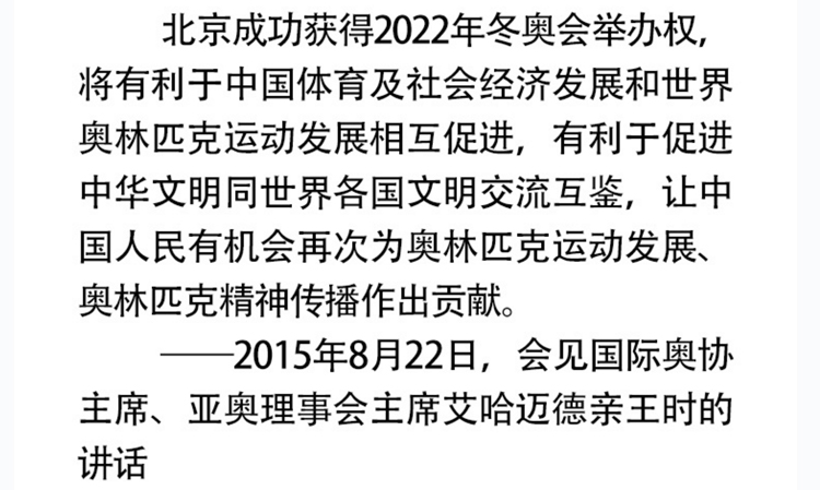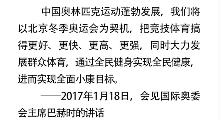 多年来,习近平总书记积极弘扬体育文化精神、倡导体育运动普及发展,在助力中华儿女共圆百年奥运梦和发展奥林匹克文化上更是不遗余力。他曾在不同场合对奥林匹克精神作出阐述,也身体力行加入到践行奥林匹克精神的行动当中。