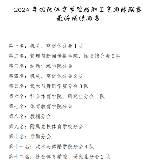 经过10天68场比赛的激烈角逐,机关、离退休分会一队获得冠军,管理与新闻传播学院、图书馆分会二队获得亚军,运动训练学院分会获得季军。