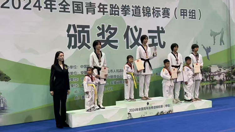 11月1日至11月7日,2024年全国青年跆拳道锦标赛(甲组)在安徽省黄山市举行。beat365亚洲体育官方网站共派4名运动员参赛,获得两枚银牌。其中刘曦、王一涵分获女子-52KG及男子-51KG第二名。 beat365亚洲体育官方网站运动员刘曦颁奖照片(左3) beat365亚洲体育官方网站运动员王一涵颁奖照片(左3) 本次赛事为期8天,共有全国各地21个单位的440余名运动员参赛。 网站链接:人民日报:2024年全国青年跆拳道锦标赛(甲组)beat365亚洲体育官方网站运动员获2枚银牌 新闻作者: 责任编辑:全魁博 新闻日期:2024-11-15 点击:次
