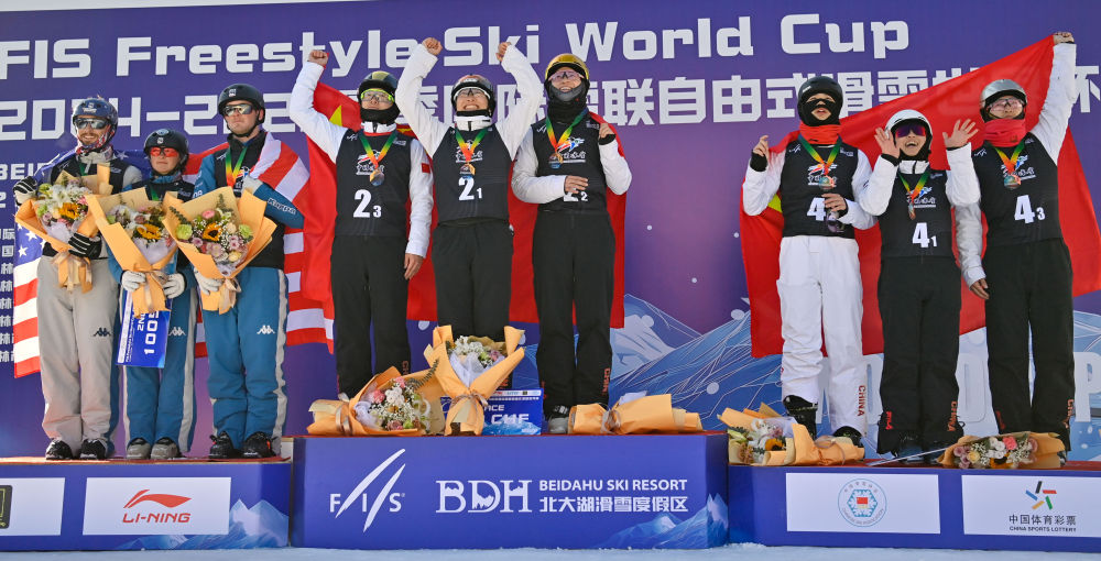 新华社长春2月24日电(记者李典、颜麟蕴)2024-2025赛季自由式滑雪空中技巧世界杯北大湖站24日落幕,中国队共收获3金2银1铜。在当日进行的混合团体比赛中,由徐梦桃、齐广璞、李天马组成的中国一队获得金牌,由陈梅婷、王心迪、李心鹏组成的中国二队摘铜。