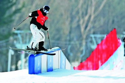 2月11日,中国选手刘梦婷获得亚冬会自由式滑雪女子坡面障碍技巧项目冠军。图为刘梦婷在比赛中。新华社发