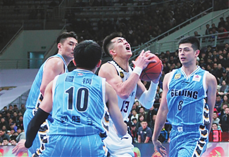10月28日,郭艾伦(持球者)在和北京队比赛中。 本报记者 孙海涛 摄