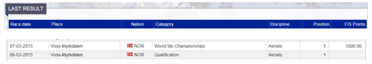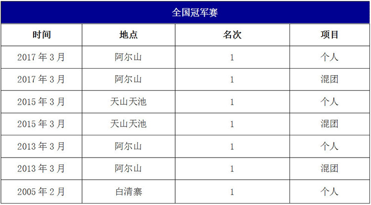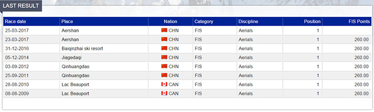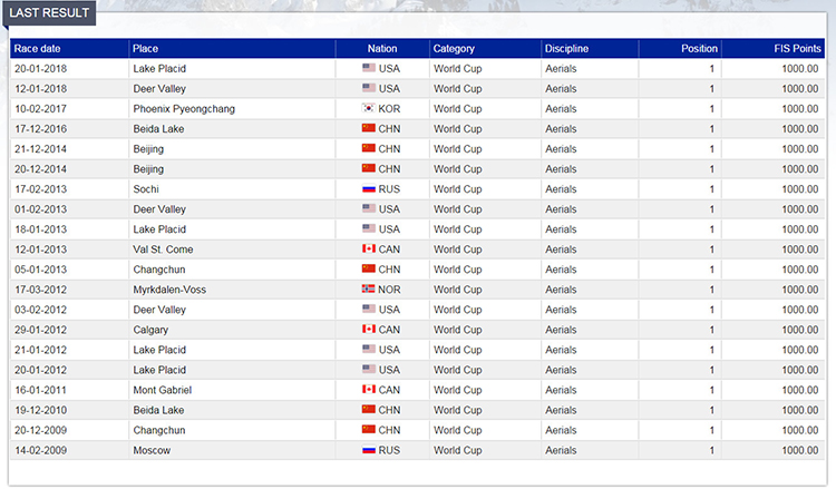 表1-5显示:徐梦桃共计获得了31项世界比赛的第一名!这是中国自由式滑雪空中技巧界的奇迹!!