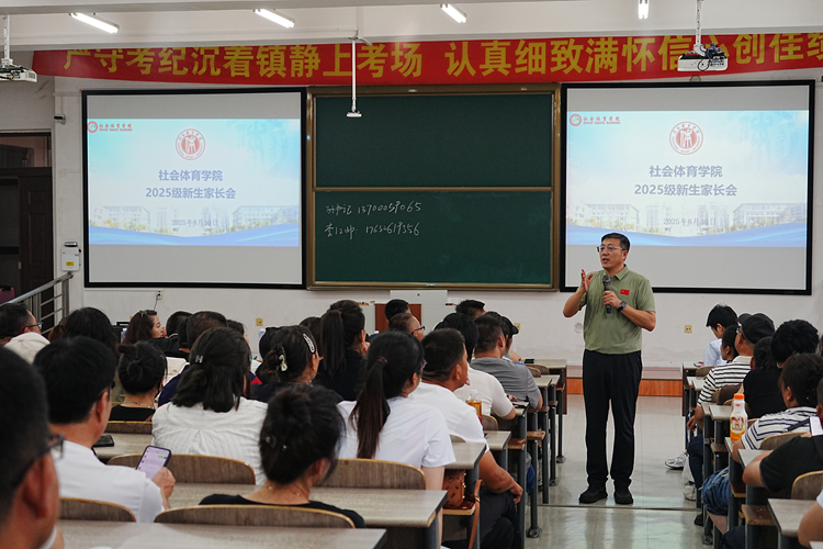 8月30日下午,社会体育学院在教学楼114召开2025级本科新生家长见面会。学院党总支书记刘秀红、院长邹本旭,办公室、分团委负责同志、新生辅导员及200余名新生家长参会。会议由党总支副书记孙光泽主持。