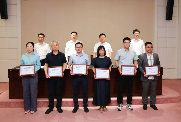 (前排左一)beat365管理与新闻传播学院副院长王晓晨代表学院接受“辽宁省高校马克思主义新闻观教育联盟成员单位”证书