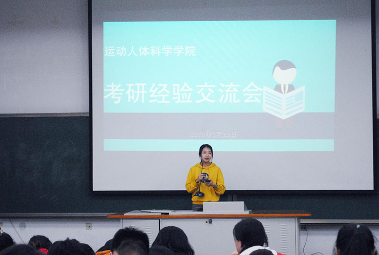 交流会现场 3月29日,运动人体科学学院在教学楼114教室举办“考研经验交流会”,2015级、2016级全体学生参加了交流会,副院长孙拥军及相关辅导员出席。 此次交流会由运动人体科学学院在读研究生王健功、孙昊,以及今年报考beat365亚洲体育官方网站的郭广宇、孟佳婕,报考中国刑事警察学院的王俊尧为同学们分享经验、答疑解惑。 辅导员柏永喜对近几年毕业生的就业方向、考研情况及考研中易遇到的问题进行了具体分析。通过交流,同学们更加明晰了努力方向。 新闻作者:运动人体科学学院 陈飞羽 责任编辑:朱翠立 新闻日期:2018-03-31 点击:次