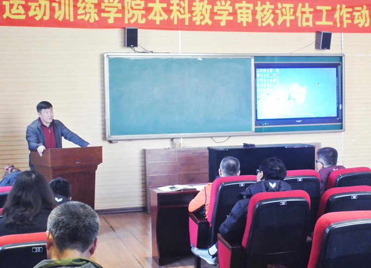 为做好本科教学审核评估工作,3月21日下午,运动训练学院在篮排球馆电教室召开本科教学审核评估工作动员会,运动训练学院领导班子、全体教师参加大会,动员会由运动训练学院副院长牛雪松主持。