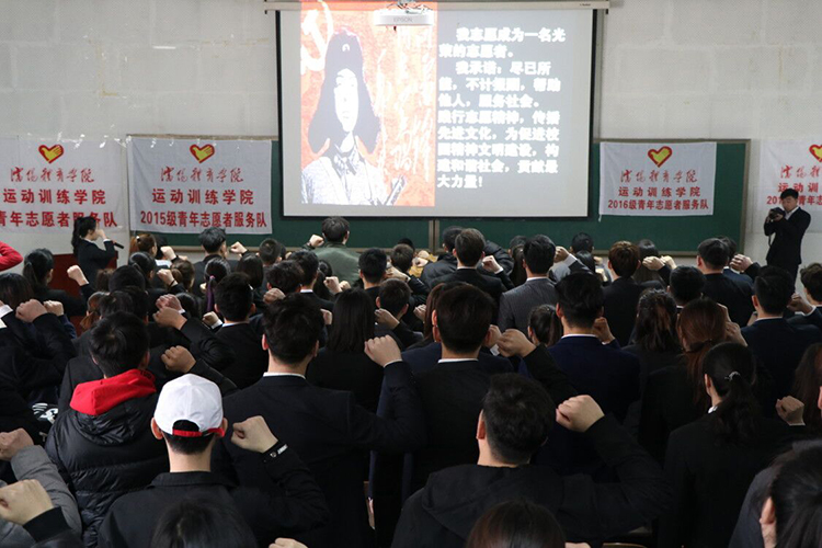 3月13日中午,运动训练学院在教学楼112教室举行青年志愿者活动启动仪式,运动训练学院党总支副书记庞宏娜和全体辅导员以及全体学生青年志愿者参加了此次活动。