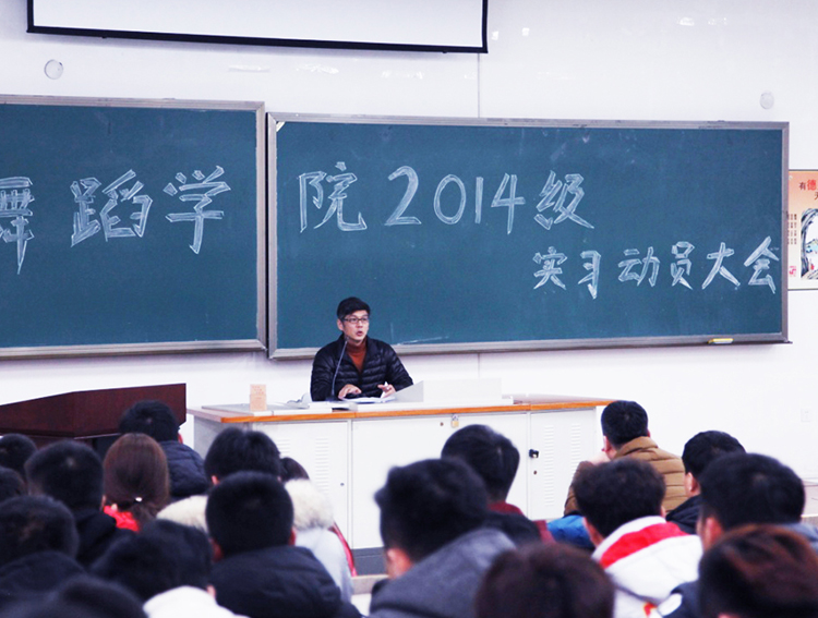 3月7日下午,武术与舞蹈学院2014级实习动员大会在教学楼211教室召开,学院领导班子及2014级辅导员出席,2014级全体学生参会。