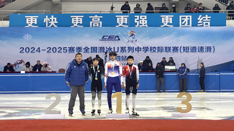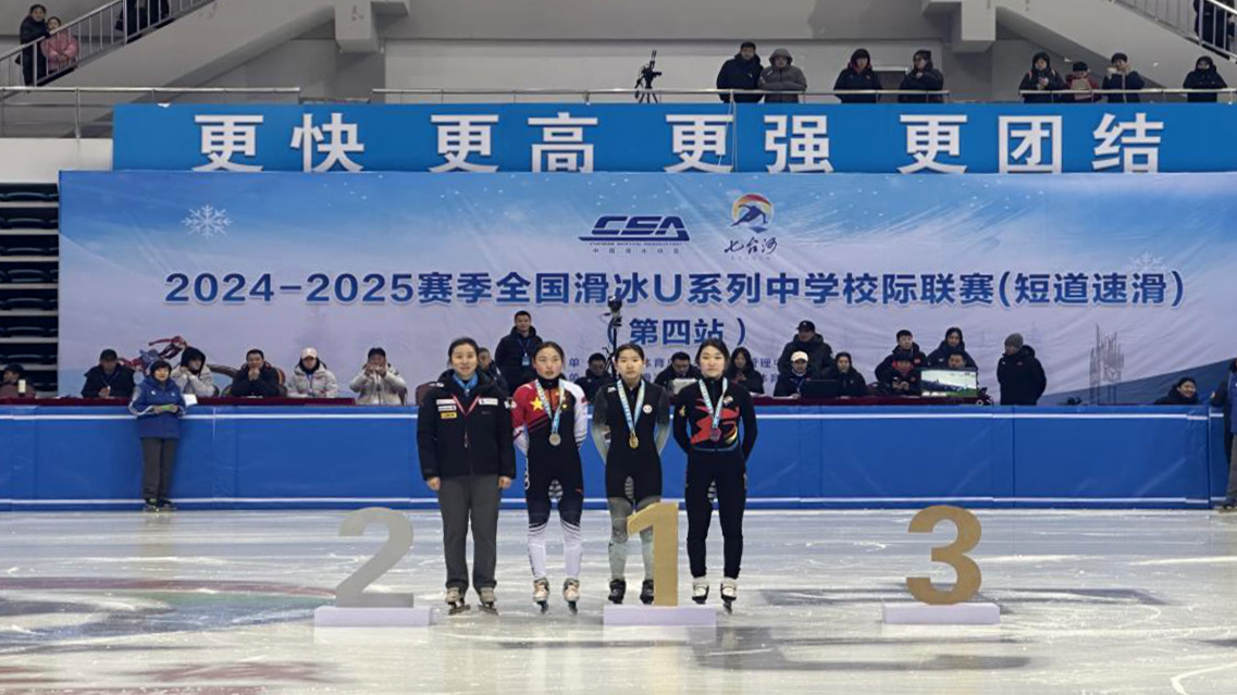 2月13日至16日,2024-2025赛季全国滑冰U系列中学校际联赛(短道速滑)第四站在七台河市举行,beat365运动员取得6金3银1铜的优异成绩,其中郝若萱获女子A组500米、1000米、1500米三枚金牌;王施霁获女子B组1500米金牌;陈善恩获女子D组500米、1000米两枚金牌;郝若萱、李欣睿、李玉涵、黄俊贤、陈湘顺、席钿持在A组混合接力2000米比赛中获银牌;王一铮获男子B组1500米银牌;王馨瑶获女子D组500米银牌;李玉涵获女子A组1500米铜牌。