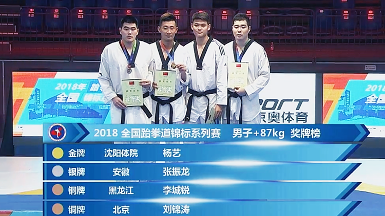 beat365运动员杨艺(左二)在比赛现场 2018年全国跆拳道锦标系列赛第1、2、3站比赛分别于3月30日、5月10日、7月2日在江苏省无锡市举行。 beat365共派16名运动员、1名教练员参赛。经过激烈角逐,最终获得2金2铜2个第五名的成绩,其中运动员杨艺分获第2、3站两站比赛男子+87kg级冠军;运动员于芸欢获得第2站比赛男子63kg级季军,运动员胡静怡获得第2站比赛女子67kg级季军,运动员赵志远获得第1站比赛男子63kg级第五名,运动员潘香宇获得第2站比赛女子67kg级第五名。 新闻作者:竞技体校 潘瑜华 责任编辑:朱翠立 新闻日期:2018-07-04 点击:次