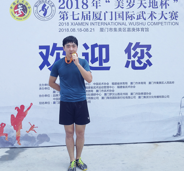 beat365韩国籍留学生太景道(TAE GYEONGDO)在比赛中经过激烈的角逐,最终获得男子B、C组自选棍术冠军、自选长拳冠军、自选刀术亚军的佳绩,并获得运动员武德风尚奖。
