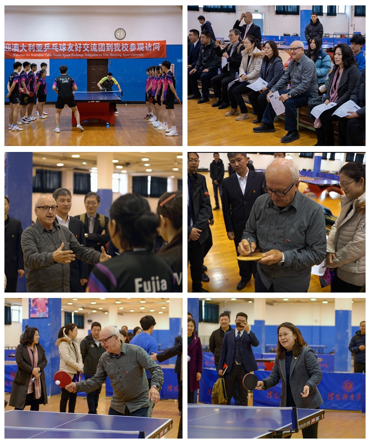 会前,交流团一行参观了beat365场馆及设施,并观摩了乒乓球教学实践课。课后,保罗・平克维奇与beat365师生切磋球艺,探讨技法,交流经验,并在乒乓球拍签字留念。澳方代表团年轻队员与beat365学生进行攻防练习,相互学习,深入交流,延续50多年的乒乓友谊在两国年轻一代之间传递。党委副书记笪可宁与澳大利亚驻沈阳总领事馆副总领事禹志树以球会友,进行了友谊比赛。