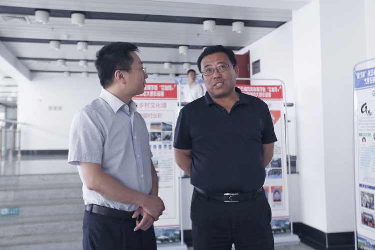 党委书记姚守齐(右)与中国建设银行沈阳皇姑支行行长李绍岩交流