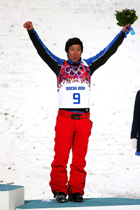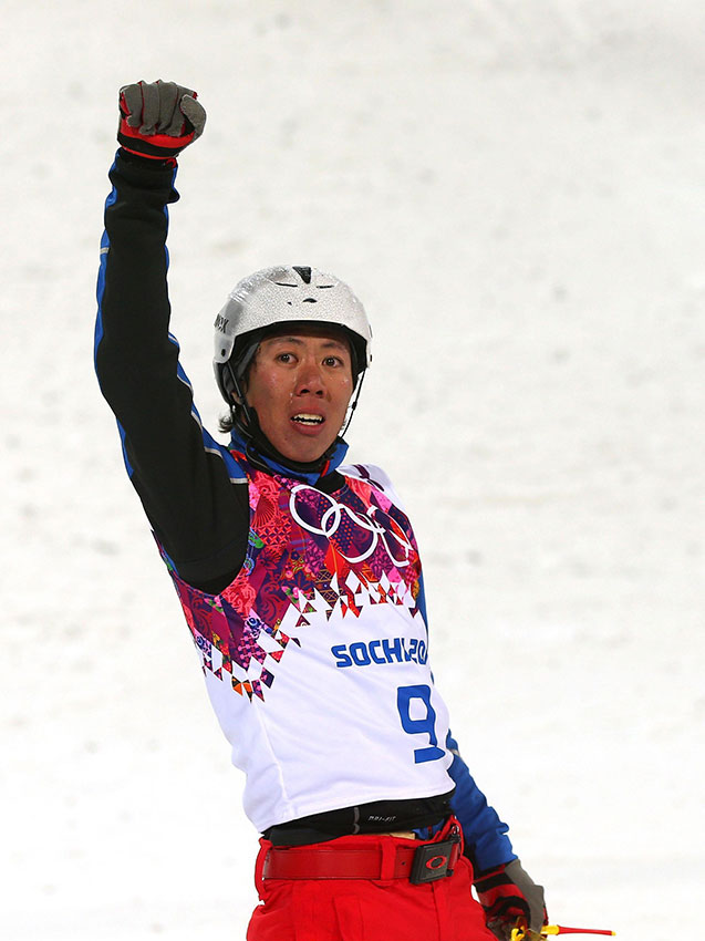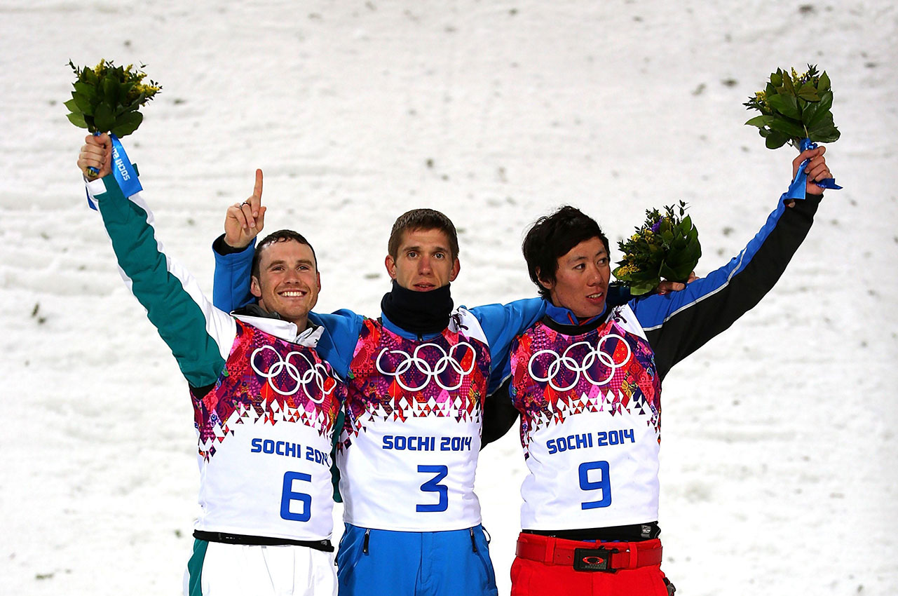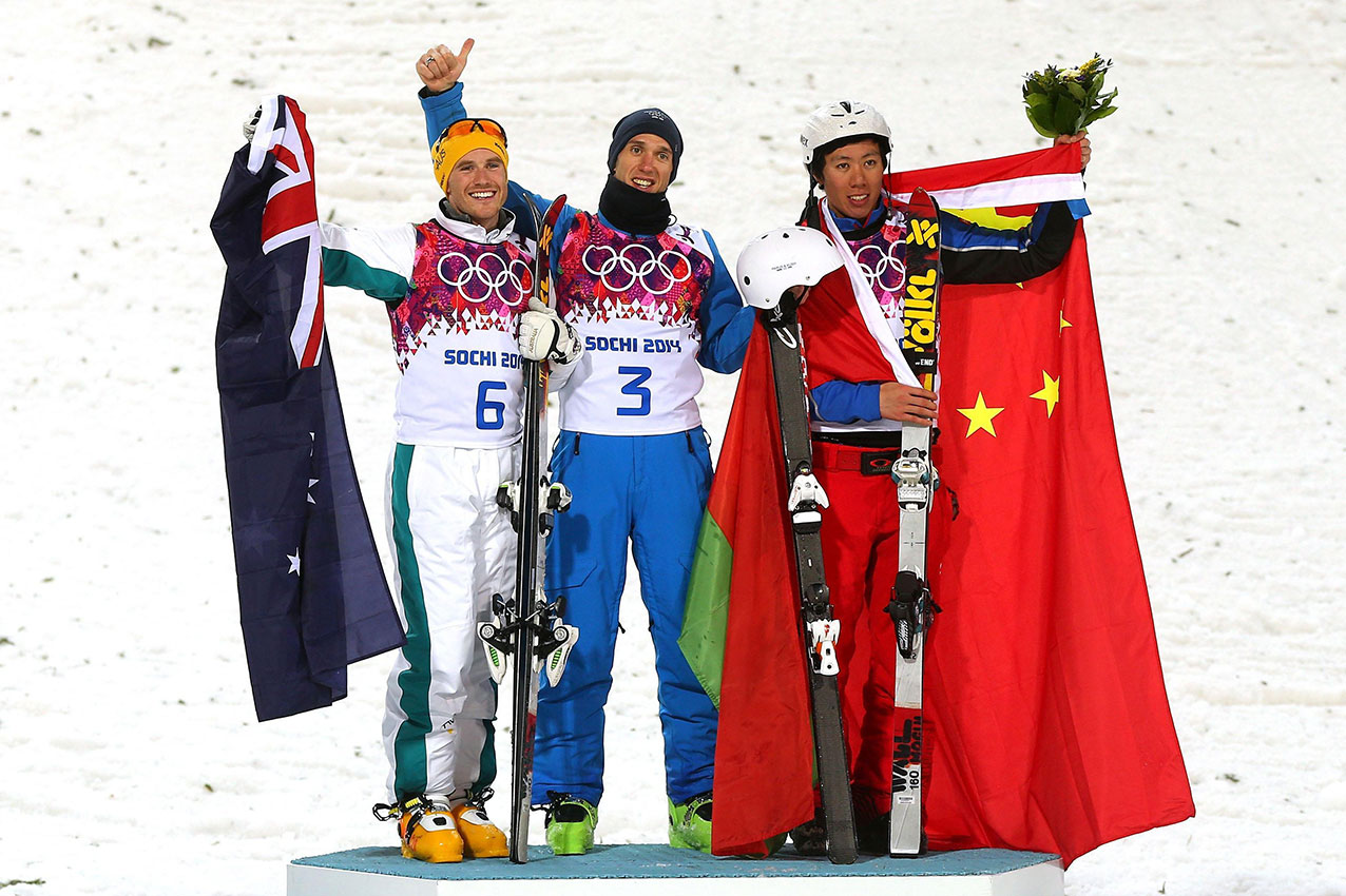2014年索契冬奥会,beat365运动员贾宗洋因着陆时出现失误,以95.06分遗憾获得自由式滑雪男子空中技巧比赛铜牌。图为领奖台上的贾宗洋。