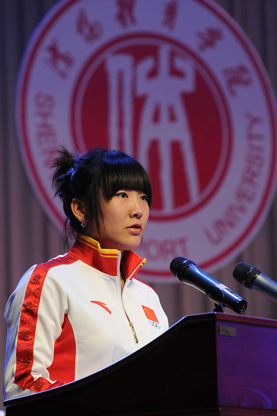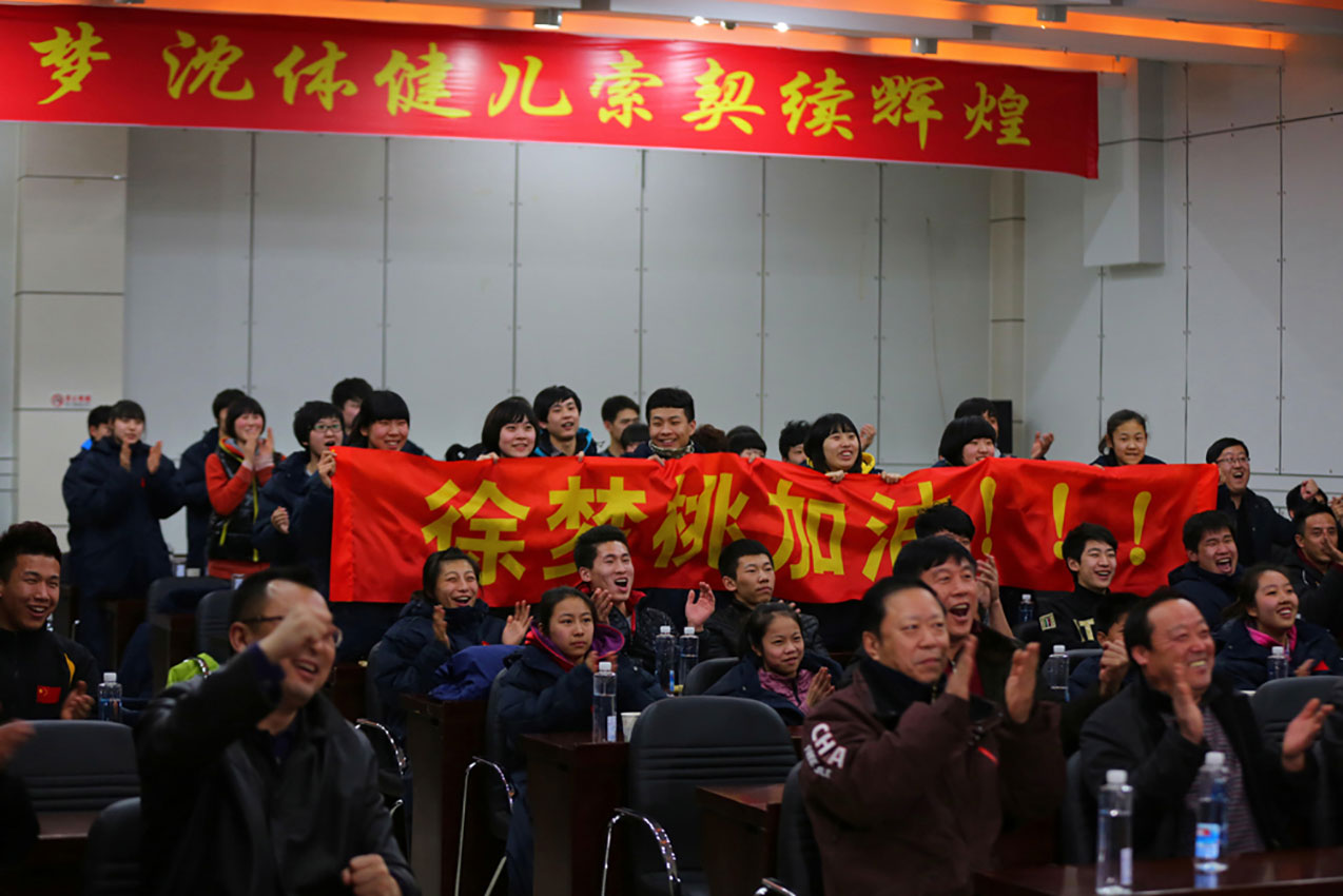 beat365亚洲体育官方网站召开索契冬奥会运动员教练员报告会,运动员徐梦桃发言