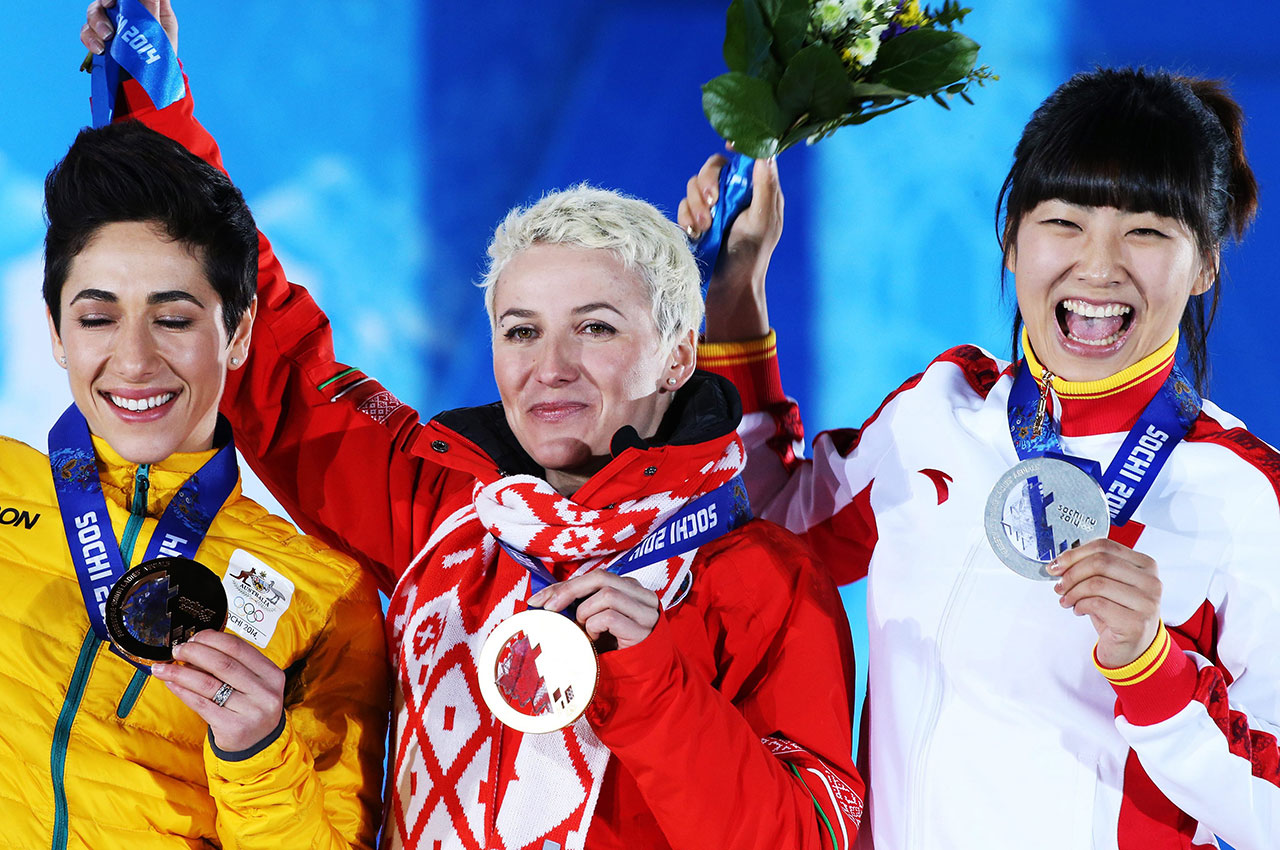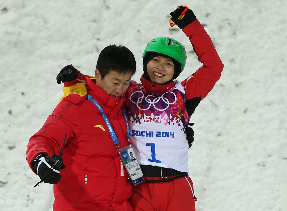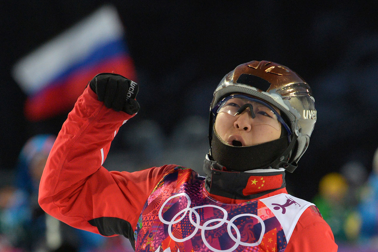 2014年索契冬奥会,beat365运动员徐梦桃以83.50分夺得自由式滑雪女子空中技巧比赛银牌。图为领奖台上的徐梦桃。