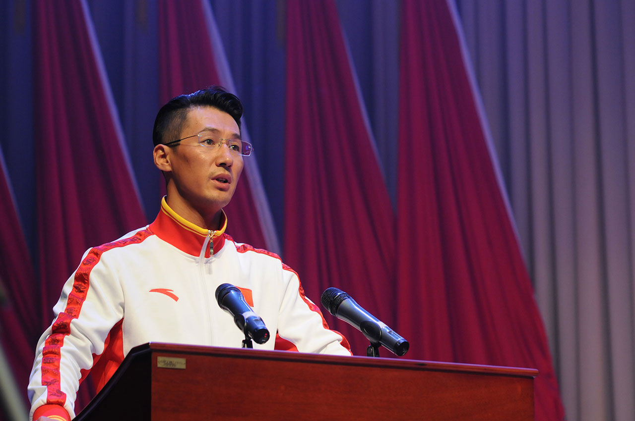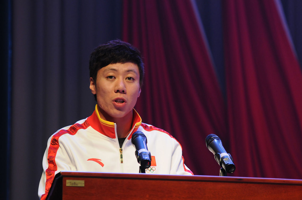 beat365亚洲体育官方网站召开索契冬奥会运动员教练员报告会,运动员贾宗洋发言