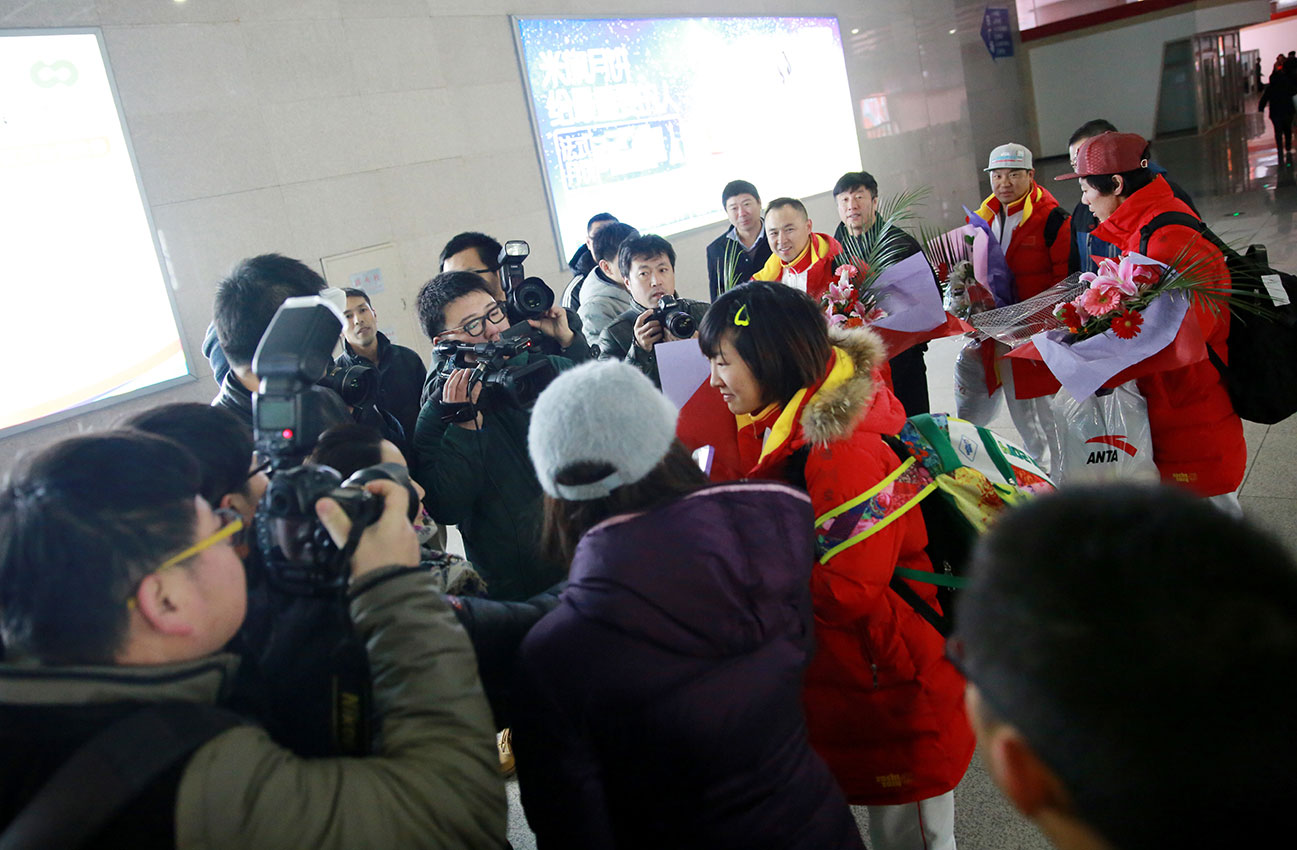 beat365亚洲体育官方网站召开索契冬奥会运动员教练员报告会,运动员李妮娜发言