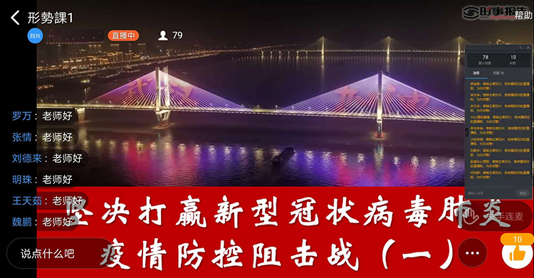 刘兴以目前国内外新冠疫情形势为切入点,从我国全面加强对疫情防控的集中统一领导;打好疫情防控的人民战争、总体战、阻击战;有信心有能力有把握打赢这场疫情防控阻击战三个方面,深入浅出地分析了我国在抗击疫情中取得重大成效,彰显了中国共产党领导和中国特色社会主义制度的显著优势。他用一个个在抗击疫情中同时间赛跑,与病魔较量,顽强拼搏、日夜奋战的医务工作者们的感人故事,教育和引导学生坚定理想信念,听党话,跟党走,努力学习专业知识,把个人的发展同祖国富强、民族复兴紧密结合起来,勇做担当民族复兴大任的时代新人。
