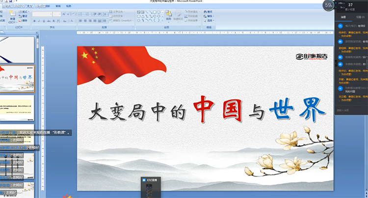 曹继红从目前国内外政治、经济环境变化为切入点,通过分析我国目前面临的内外部矛盾,重点分析了中国在世界大变局中的角色和地位,客观的阐述了大变局中中国所面临的机遇和挑战。授课过程中曹继红还通过对全球气候变化、恐怖主义、难民危机、网络安全、公共卫生等几方面对全球治理体系进行了分析,特别是结合今年的疫情防控、经济建设、扶贫工作、大学生就业等几方面工作,与西方国家的治理体系进行了比较,用事实和数据阐明了中国共产党的治理能力和治理水平的优势,同时号召同学们把个人的发展同祖国富强、民族复兴紧密结合起来,时刻准备做好中国特色社会主义的建设者和接班人。
