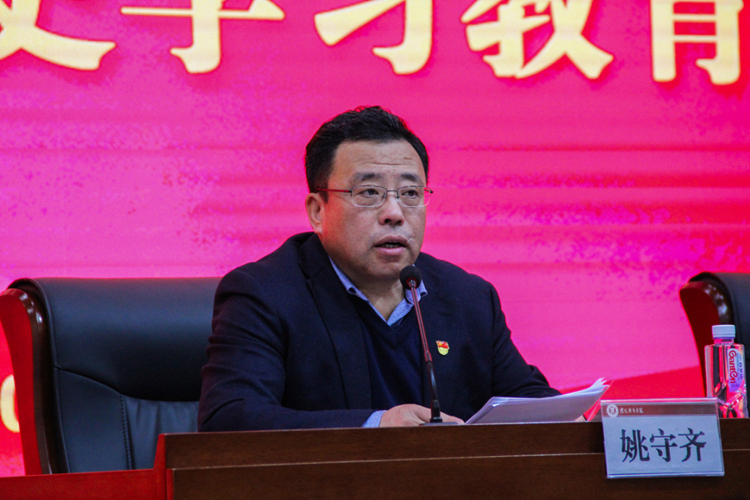 姚守齐指出,习近平总书记的重要讲话,深刻阐述了开展党史学习教育的重大意义和重点工作要求,为开展好党史学习教育指明了方向,提供了根本遵循。全校各级党组织和党员干部要深刻领会党史学习教育的重大意义,把思想和行动统一到习近平总书记重要讲话精神和党中央决策部署上来,切实增强学习教育的思想自觉、政治自觉和行动自觉,真正做到学史明理、学史增信、学史崇德、学史力行,不断提高政治判断力、政治领悟力、政治执行力。同时要注重把党史学习教育与学校发展实际相结合,立足本职,担当作为,努力开创学校改革发展新局面。